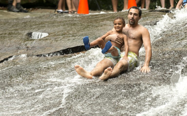- Sliding Rock: The one exception to waterfall safety rules! This 60-foot natural waterslide in Pisgah National Forest dumps into an 8-foot deep pool of incredibly cold water. Two observation platformsare available for viewing (wear denim shorts for the ride!)